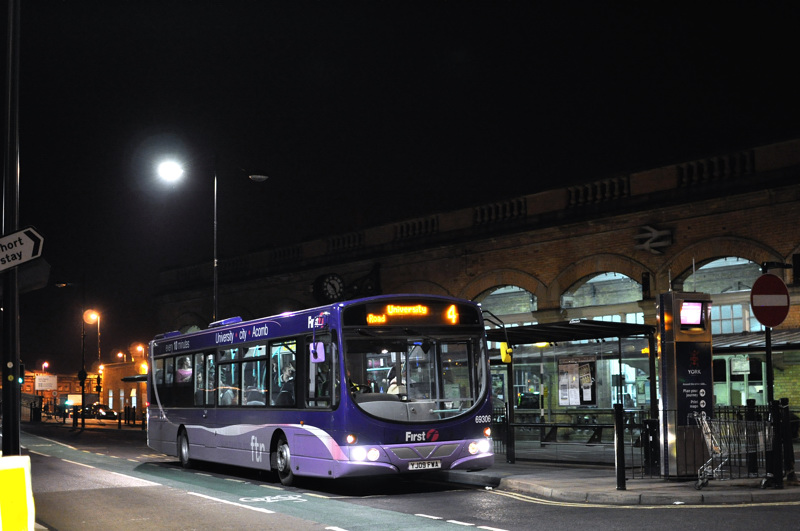 First 69306 in ftr livery on route 4 at York station after dark. 6 May 2011. Photograph. John King. |
