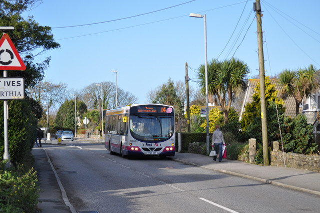 First 69228 on route 14 on St Ives Road, Carbis Bay, St. Ives. 20 November 2009. |
