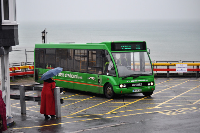Western Greyhound 911 seen on route 516 in St. Ives bus station on a wet November day. 21 November 2009. |