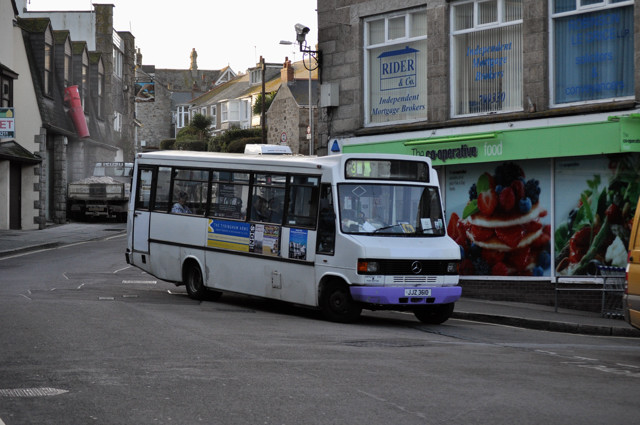 school. St Ives Bus Co, JJZ3610 is seen in Royal Square, St. Ives town centre. 20 November 2009. |