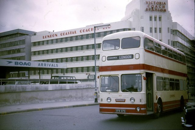 With a backdrop of Victoria Coach Station is a Leyland Atlantean VFR