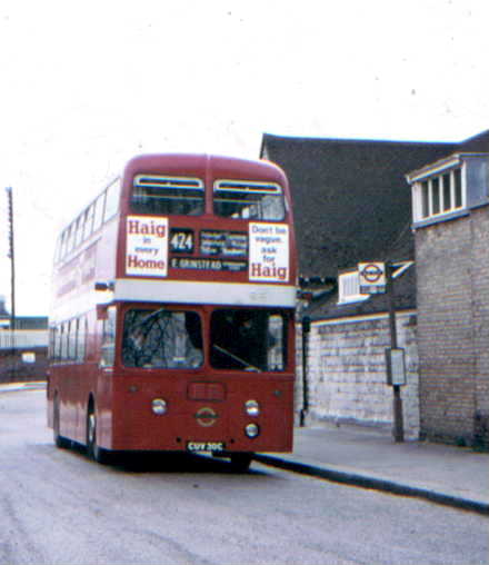 XA30. CUV 30C. Seen on route 424 at Alma Road, Reigate station. A red central area bus on country duties. At the same time as country area Fleetlines were used on central services. One of the routes was the 67 |