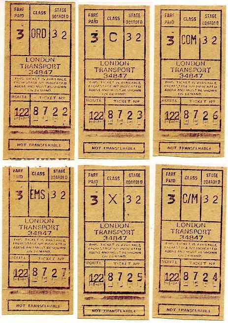 A full set of London Transport Gibson machine tickets for service 122.