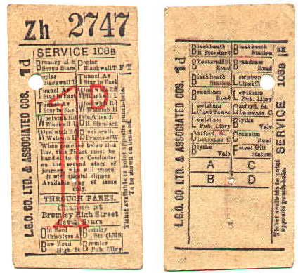 London General Omnibus Co Ltd & Associated Companies. Penny geographic ticket for service 108b. |