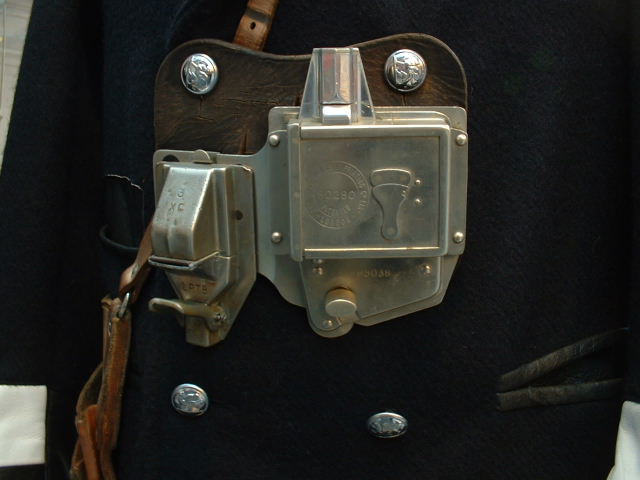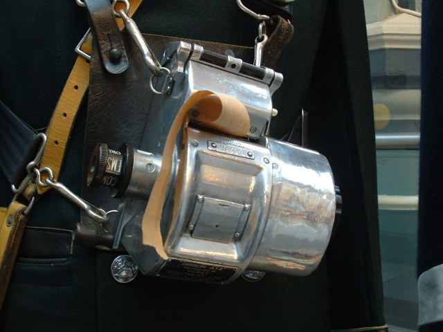 Bell Punch ticket machine. A ticket was placed in the slot with the