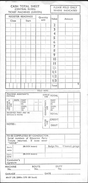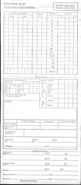 Cash total sheets for Gibson Machines. The left is for pounds shillings and pence, on the right decimal. |