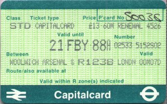Left is a travelcard issued at a retail outlet for zones Bottom left is a travel card issued by National Rail Bottom right issued by the Docklands Light Railway. |