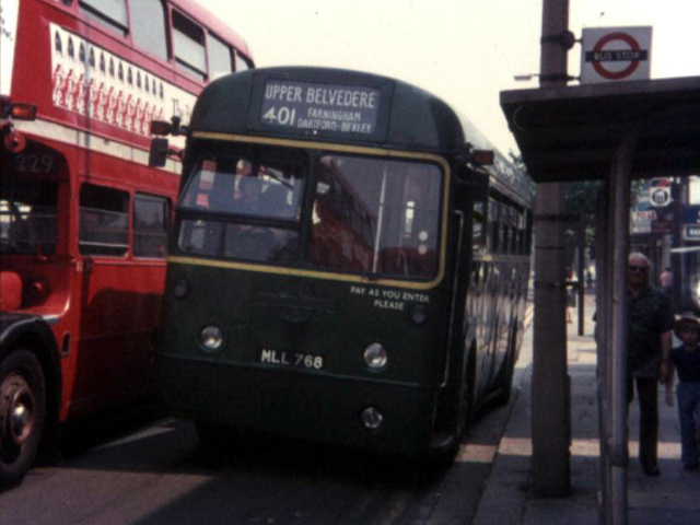 It was possible to travel by green bus to such places as, Sevenoaks, Otford, Horton Kirby, Eynsford and Gravesend, but not any longer. June 1976. Photograph. Allan Bedford. |