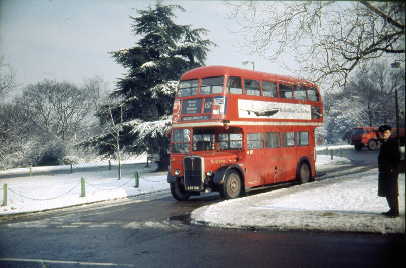 RT 3297. LYR 516. Service 161a Woolwich - Petts Wood. Some journeys terminate at Chislehurst War Memorial. Extended to Charlton Victoria Way in rush hours. Friday 13 February 1970. Photograph. John King. |