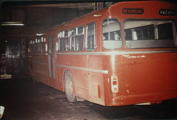Two views of the Metro Scania demonstrator being stored in AW garage