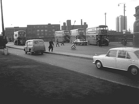 A busy day with buses at North Woolwich in April 1970. Routemasters