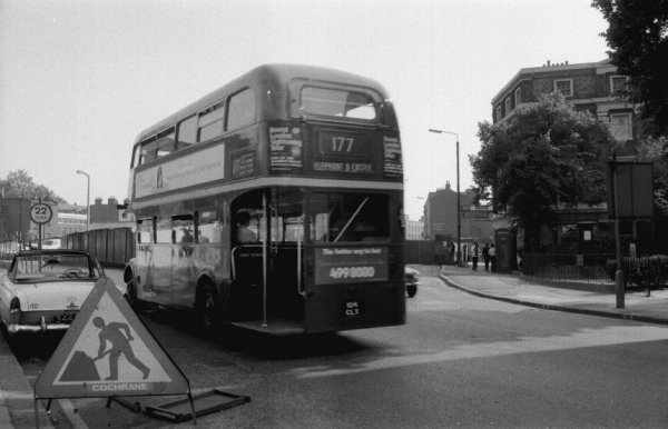 RM 1582. 582 CLT on service 177 awaits a return to Abbey Wood. The Elephant and Castle was used for Sunday journeys, then later all but a few journey terminated here. February 1971. Photograph. John King. |