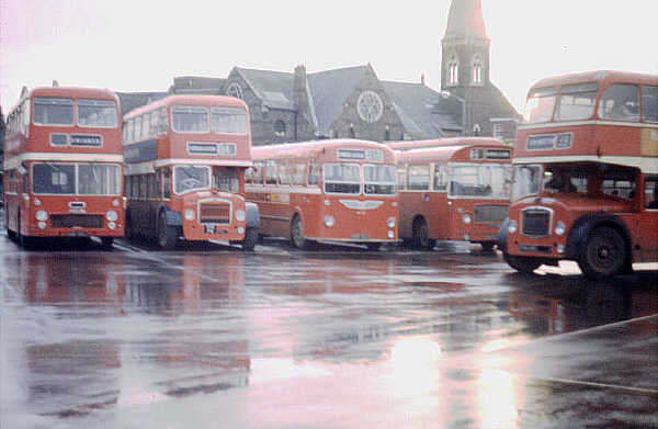 Kings Lynn bus station with various Eastern Counties vehicles lined