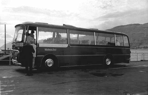 A Midland Red coach with Loch Linnhe as a backdrop. Seen here parked