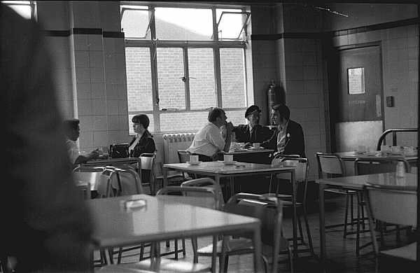 Crews take a break in Abbey Wood canteen in July 1970. LT catering