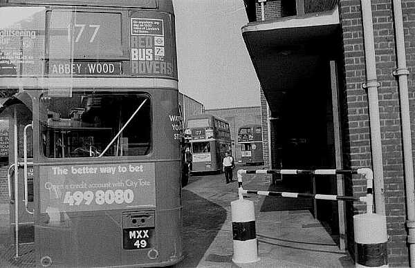 RT 2960. MXX 49, on Abbey Wood Garage forecourt in June 1970. I can