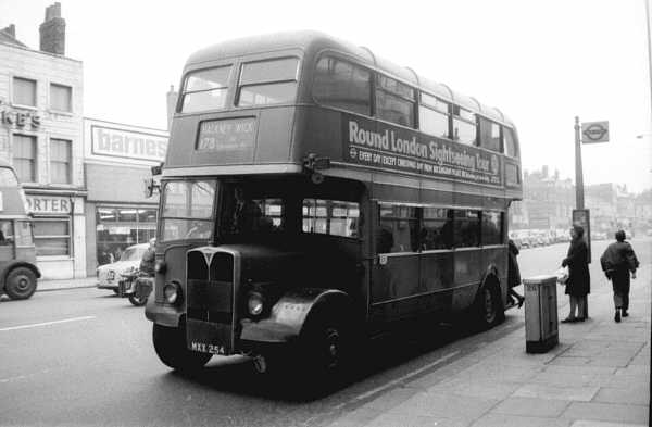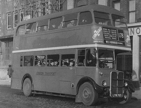 In this picture RT 2769. LYR 753 is seen on possibly the first day of the routes operation. The tram rails can still be seen in the road. It only lasted until 19 May 1954 when it was replaced by the 2a which went all the way to Golders Green from West Norwood. This wasn't the first time a 178 bus had replaced a tram route. On 29 March 1927 L.G.O.C. route 178 replaced the branch line from Croydon to Addiscombe It ran from Katherine Street to Addiscombe, Black Horse using NS buses from Elmers End Garage (ED). Service ended on 11 October 1938. |