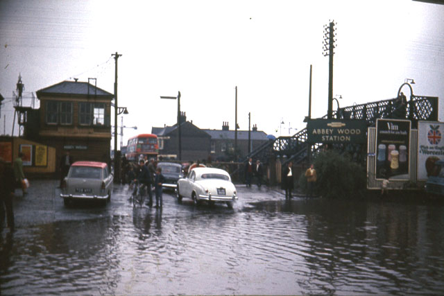 Abbey Wood station again, this time on 14 September 1968. A heavy downfall of rain caused flooding both here and at Belvedere. See here for more pictures. |