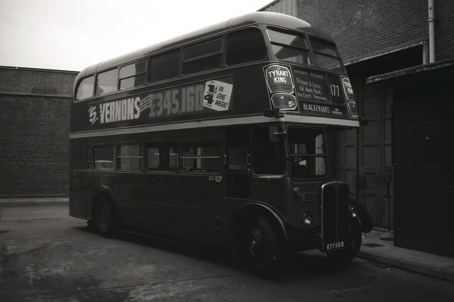 RT3229 (KYY958) seen on route 177 on the stand in Abbey Wood Garage.