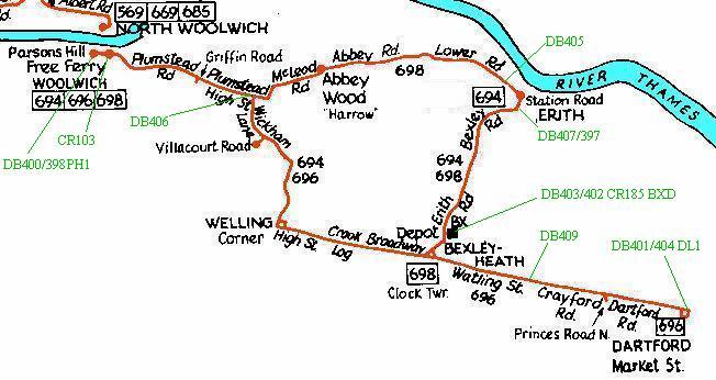 The 694 service went from Woolwich to Erith via Welling and Bexleyheath.
